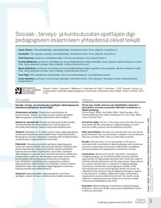 Tutkimuksen tarkoitus: Tutkimuksen tarkoituksena oli kuvata sosiaali-, terveys- ja kuntoutusalan (soteku) opettajien digipedagogiseen osaamiseen yhteydessä olevia tekijöitä.