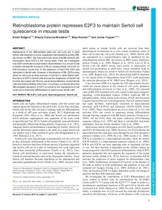 E2f3 contributes to adult Sertoli cell proliferation in a mouse model of Sertoli cell-specific knockout of Rb by crossing these mice with an E2f3 knockout mouse line. In the presence of intact RB, E2f3 was redundant in Sertoli cells. However, in the absence of RB, E2f3 is a key driver for cell cycle re-entry and loss of function in adult Sertoli cells. Knockout of E2f3 in Sertoli cells rescued the breakdown of Sertoli cell function associated with Rb