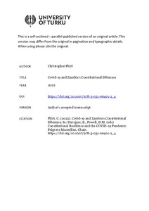Desperate times call for desperate measures. This holds true in times of public emergencies. Constitutionalism and the rule of law, however, impose limits on how the powers of government can be duly exercised even in the face of public emergencies. Focusing on the period March 2020 to March 2021, this chapter examines the response of the Zambian government to the Covid-19 pandemic through the lens of constitutionalism and the rule of law. It reveals that the response was exclusively executive-driven. Several measures which the executive introduced to contain the spread of Covid-19 had no legal basis, and enforcement was arbitrary. Parliamentary and judicial oversight was also largely absent. This saw apparent violations of human rights go without redress. This chapter ends with some general observations on what could be learnt from the experience during the period under examination, to facilitate constitutional resilience in the future.