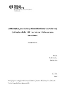 Jakkien (Bos grunniens) ja tiibetinhanhien (Anser indicus) fysiologinen kyky elää vuoristossa vähähappisessa ilmanalassa