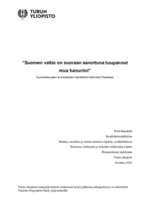 (25.09.2025)Käsittelen tässä tutkielmassa suomalaisuuden ja kansallisen identiteetin diskursseja Pasila-televisiosarjassa. Pasila on suomalainen animaatiosatiiri, joka esitettiin ensimmäistä kertaa vuosina 2007–2013 YLE TV2-kanavalla. ...avoin -