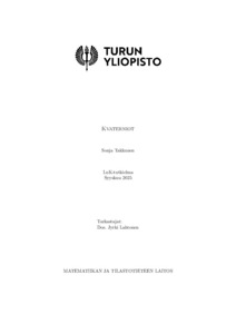 (30.09.2025)Kvaterniot ovat kompleksilukujen neliulotteinen laajennus. Niillä on yksi reaaliosa ja kolme imaginääriyksikköä: i, j ja k. Kvaternioille on määritelty epäkommutatiivinen tulo ja ne muodostavat ryhmän sen suhteen. K ...avoin -