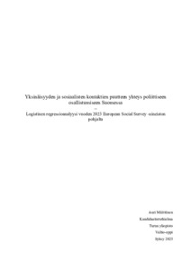 Yksinäisyyden ja sosiaalisten kontaktien puutteen yhteys poliittiseen osallistumiseen Suomessa : Logistinen regressioanalyysi vuoden 2023 European Social Survey -aineiston pohjalta