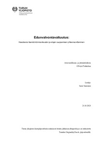 (24.11.2025)Tässä kandidaatintutkielmassa sovellan Hannah Arendtin faktuaalisen totuuden käsitettä totuudenjälkeisen politiikan (Lee McIntyren teoretisointia noudatellen) tutkimukseen. Argumenttiani tukeakseni lainaan käsitteistöä ...avoin -