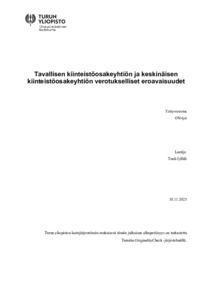 (26.11.2025)Tutkielman aiheena on tavallisen kiinteistöosakeyhtiön ja keskinäisen kiinteistöosakeyhtiön verotukselliset eroavaisuudet. Tutkimuksen kohteena ovat erityisesti tuloverolaki sekä elinkeinoverolaki. Tarkoituksena on selvittää ...avoin -