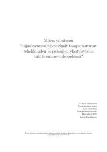 (26.11.2025)Tässä tutkielmassa tarkastellaan ydintason huijauksenestojärjestelmien tehokkuutta ja niiden vaikutusta pelaajien yksityisyyteen online-videopeleissä. Järjestelmät ovat saaneet paljon kritiikkiä mediassa ja niiden toiminnasta ...avoin -