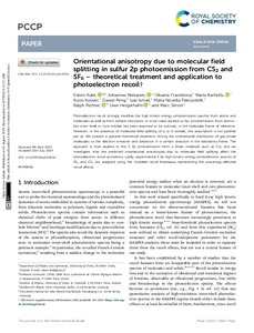 Orientational anisotropy due to molecular field splitting in sulfur 2p photoemission from CS2 and SF6 - theoretical treatment and application to photoelectron recoil