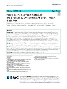 Associations between maternal pre-pregnancy BMI and infant striatal mean diffusivity