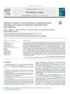 Proteomic correlates of cortical thickness in cognitively normal individuals with normal and abnormal cerebrospinal fluid beta-amyloid1-42