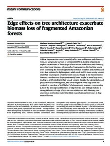 Edge effects on tree architecture exacerbate biomass loss of fragmented Amazonian forests