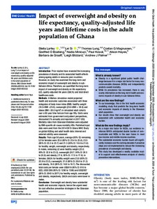 Impact of overweight and obesity on life expectancy, quality-adjusted life years and lifetime costs in the adult population of Ghana