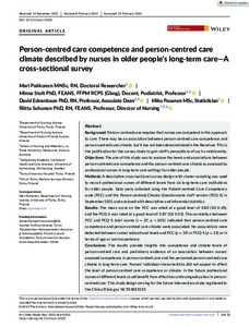 Person-centred care competence and person-centred care climate described by nurses in older people's long-term care-A cross-sectional survey
