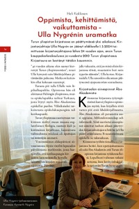 Turun yliopiston kirjastossa on päättymässä yksi aikakausi. Kirjastonjohtaja Ulla Nygrén on jäänyt eläkkeelle 1.3.2024 toimittuaan kirjastonjohtajana lähes 24 vuoden ajan, ensin Turun kauppakorkeakoulussa ja vuodesta 2010 Turun yliopistossa. Kirjastoura on kestänyt tätäkin kauemmin.