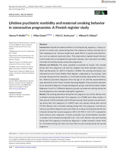 Lifetime psychiatric morbidity and maternal smoking behavior in consecutive pregnancies: A Finnish register study