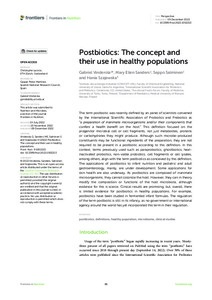 The term postbiotic was recently defined by an panel of scientists convened by the International Scientific Association of Probiotics and Prebiotics as “a preparation of inanimate microorganisms and/or their components that confers a health benefit on the host.” This definition focused on the progenitor microbial cell or cell fragments, not just metabolites, proteins or carbohydrates they might produce. Although such microbe-produced constituents may be functional ingredients of the preparation, they are not required to be present in a postbiotic according to this definition. In this context, terms previously used such as paraprobiotics, ghostbiotics, heat-inactivated probiotics, non-viable probiotics, cell fragments or cell lysates, among others, align with the term postbiotics as conceived by this definition. The applications of postbiotics to infant nutrition and pediatric and adult gastroenterology, mainly, are under development. Some applications for skin health are also underway. As postbiotics are composed of inanimate microorganisms, they cannot colonize the host. However, they can in theory modify the composition or functions of the host microbiota, although evidence for this is scarce. Clinical results are promising, but, overall, there is limited evidence for postbiotics in healthy populations. For example, postbiotics have been studied in fermented infant formulas. The regulation of the term postbiotic is still in its infancy, as no government or international agency around the world has yet incorporated this term in their regulation.