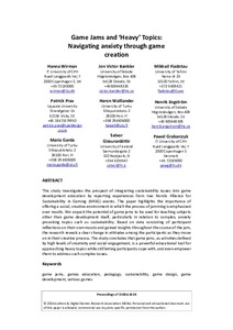 This study investigates the prospect of integrating sustainability issues into game development education by reporting experiences from two Nordic Alliance for Sustainability in Gaming (NASG) events. The paper highlights the importance of offering a social, creative environment in which the process of jamming is emphasized over results. We unpack the potential of game jams to be used for teaching subjects other than game development itself, particularly in relation to complex, anxiety provoking topics such as sustainability. Based on data consisting of participant reflections on their own moods and gained insights throughout the course of the jam, the research reveals a clear change in attitudes among the participants as they move on in their creative process. The study concludes that game jams, as activities defined by high levels of creativity and social engagement, is a powerful educational tool for approaching heavy topics while still letting participants cope with, and even empower them to address such complex issues.