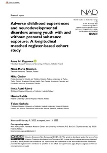 Adverse childhood experiences and neurodevelopmental disorders among youth with and without prenatal substance exposure: A longitudinal matched register-based cohort study