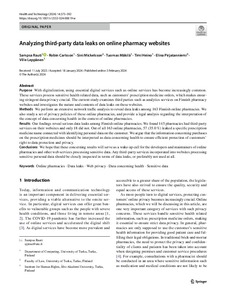 Purpose With digitalization, using essential digital services such as online services has become increasingly common. These services process sensitive health related data, such as customers' prescription medicine orders, which makes ensuring stringent data privacy crucial. The current study examines third parties such as analytics services on Finnish pharmacy websites and investigates the nature and contents of data leaks on these websites.