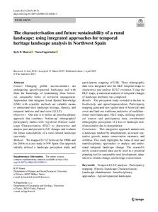 Objectives Our aim is to utilise an interdisciplinary approach that combines 'bottom-up' ethnographic/participatory studies with 'top-down' Historic Landscape Characterisation (HLC) to characterise and analyse past and present LULC changes and evaluate the future sustainability of a rural cultural landscape case study.