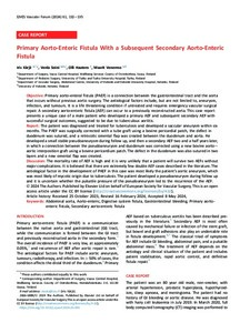 Objective Primary aortoenteral fistula (PAEF) is a connection between the gastrointestinal tract and the aorta that occurs without previous aortic surgery. The aetiological factors include, but are not limited to, aneurysm, infection, and tumours. It is a life threatening condition if untreated and requires emergency vascular surgical repair. A secondary aortoenteric fistula (AEF) can occur to a previously reconstructed aorta. This case report presents a unique case of a male patient who developed a primary AEF and subsequent secondary AEF with successful surgical outcomes, suggested to be due to tuberculous aortitis.