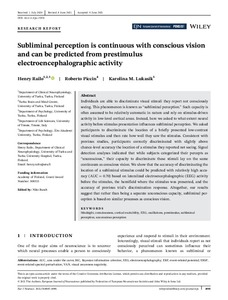 Subliminal perception is continuous with conscious vision and can be predicted from prestimulus electroencephalographic activity