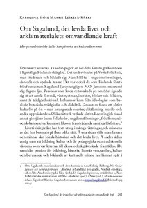 Om Sagalund, det levda livet och arkivmaterialets omvandlande kraft. Hur personhistoriska källor kan påverka det kulturella minnet