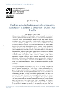 Maaltamuutto ja yhteiskunnan rakennemuutos. Vaikutukset liikuntaan ja urheiluun Turussa 1960-luvulla