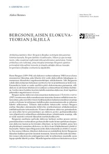 Artikkelissa esitetään, että tällainen negatiivinen tulkinta elokuvan potentiaalista voidaan kuitenkin välttää, kun huomio kohdistetaan laajemmin Bergsonin filosofiaan kokonaisuudessaan ja etenkin siinä hyvin keskeisiin kuvallisuuden, liikkeen ja ajan käsitteistöihin. Samankaltaiset käsitteet ja ongelmat nousevat verrattain luonnollisesti esiin myös suoraan elokuvaa koskevien teorioiden ja käytäntöjen yhteydessä. Näin ollen Bergsonin filosofian ja elokuvatutkimuksen välille rakentuu hyvinkin olemuksellinen kytkös, jota esimerkiksi Gilles Deleuze korostaa vahvasti omassa elokuvafilosofiassaan. Artikkelissa merkittävänä painopisteenä onkin Deleuzen hahmottama elokuvan ontologia, jossa bergsonilaisen metafysiikan rakenne ja keskeiset eronteot saavat tarkkaan määritellyt vastineensa tietyissä elokuvallisen ilmaisun peruselementeissä.
