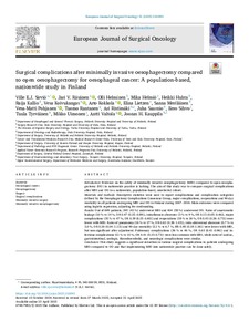 Surgical complications after minimally invasive oesophagectomy compared to open oesophagectomy for oesophageal cancer: A population-based, nationwide study in Finland