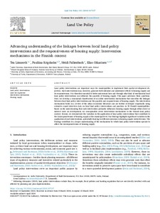 Advancing understanding of the linkages between local land policy interventions and the responsiveness of housing supply : Intervention mechanisms in the Finnish context