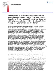 Management of patients with hypertension and chronic kidney disease referred to Hypertension Excellence Centres among 27 countries. On behalf of the European Society of Hypertension Working Group on Hypertension and the Kidney