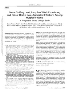 Nurse Staffing Level, Length of Work Experience, and Risk of Health Care-Associated Infections Among Hospital Patients A Prospective Record Linkage Study