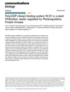 Poly(ADP-ribose)-binding protein RCD1 is a plant PARylation reader regulated by Photoregulatory Protein Kinases