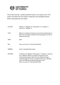 Effects of incubation temperature and maternal phenotype on Baltic herring (Clupea harengus membras) eggs and larvae: An experimental study