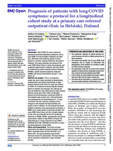 Prognosis of patients with long COVID symptoms: a protocol for a longitudinal cohort study at a primary care referred outpatient clinic in Helsinki, Finland