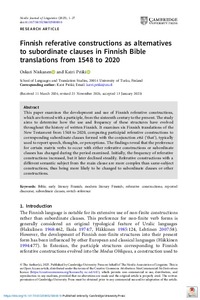 Finnish referative constructions as alternatives to subordinate clauses in Finnish Bible translations from 1548 to 2020