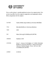 Microbial biofilms defined as extremely complex ecosystems are considered clinically important for humans. However, the concept and significant roles of microbial biofilms in the progression of disease have seriously lagged in veterinary medicine, when compared with human medicine. Although the importance of biofilms in animal health is just beginning to emerge, limited studies have paid attention that microbial biofilms are clinically important in the field of veterinary medicine, and lead to serious economic losses. In this review, the importance of microbial biofilms causing high economic losses in the livestock industry has been highlighted. Besides, the concept of microbial biofilm, their role in the pathogenesis of the animal diseases, as well as diagnosis approaches and possible therapeutic strategies needed to overcome their detrimental effects in veterinary medicine, have been discussed.