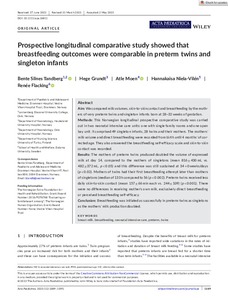 Prospective longitudinal comparative study showed that breastfeeding outcomes were comparable in preterm twins and singleton infants