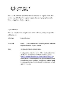 Book review: Curtis Runstedler: Alchemy and Exemplary Poetry in Middle English Literature. 2023. ISBN: 978-3-031-26605-8
