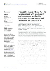 Inspired by nature: Fiber networks functionalized with tannic acid and condensed tannin-rich extracts of Norway spruce bark show antimicrobial efficacy