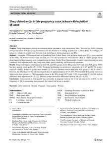Altogether 1778 women from the FinnBrain Birth Cohort Study with gestation weeks over 37 + 6 were enrolled in the study. The women were divided into IOL (n = 331) and spontaneous onset of labor (SOL, n = 1447) groups. Sleep disturbances in late pregnancy were evaluated using the Basic Nordic Sleep Questionnaire. Logistic regression analyses were conducted with adjustments for age, body mass index, parity, smoking, and depressive symptoms.