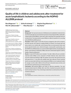 Quality of life in children and adolescents after treatment for acute lymphoblastic leukemia according to the NOPHO ALL2008 protocol