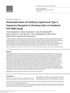 Dissociable Roles of Cerebral mu-Opioid and Type 2 Dopamine Receptors in Vicarious Pain: A Combined PET-fMRI Study