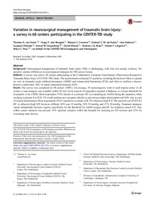 Variation in neurosurgical management of traumatic brain injury: a survey in 68 centers participating in the CENTER-TBI study
