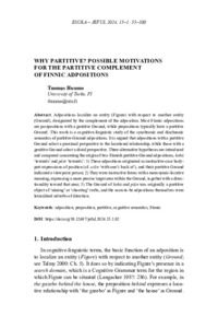 Why partitive? Possible motivations for the partitive complement of Finnic adpositions