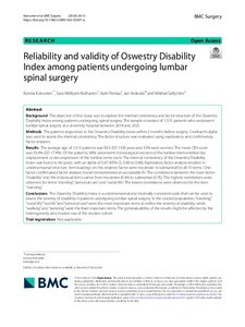 Reliability and validity of Oswestry Disability Index among patients undergoing lumbar spinal surgery