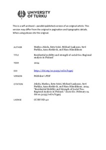 Residential mobility and strength of social ties: Regional analysis in Finland