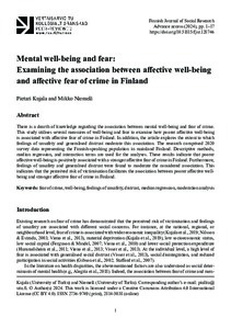 Mental well-being and fear: Examining the association between affective well-being and affective fear of crime in Finland