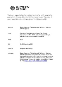 Founding Contributions of Count Carl Gustaf Mannerheim (1797-1854) to the Understanding of Beetles in Pacific Northwestern America