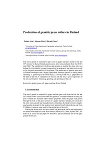 The use of granite as material for press rolls in paper machines started in the late 19th century. In Kuru, Finland granitic press rolls were produced from the 1930s until 2008. The suitability of the Kuru grey granite as material for press rolls was defined by its durability, mineral composition, homogeneity, and grain size as well as by the good extractability of the granite. The production of granitic press rolls in Finland developed into a highly specialized industrial process in many phases including: 1) quarrying of the stone block, 2. sawing of the roll, 3. preparation of the ends of the roll, 4. installation of the axis into the roll, 5. pre-compression of the roll, and finally 6. balancing, grinding and polishing of the roll.